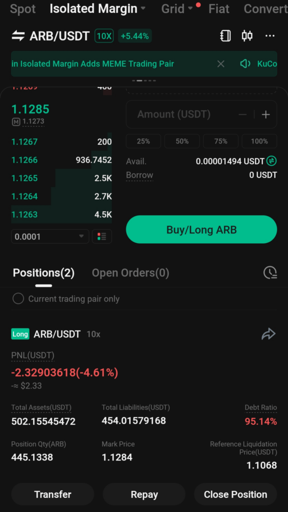 [ad_1] Debt Ratio on ARB/USDT calculating wrong. Should be 90% but showing higher. [ad_2] ➔ Visit Kucoin now and start trading